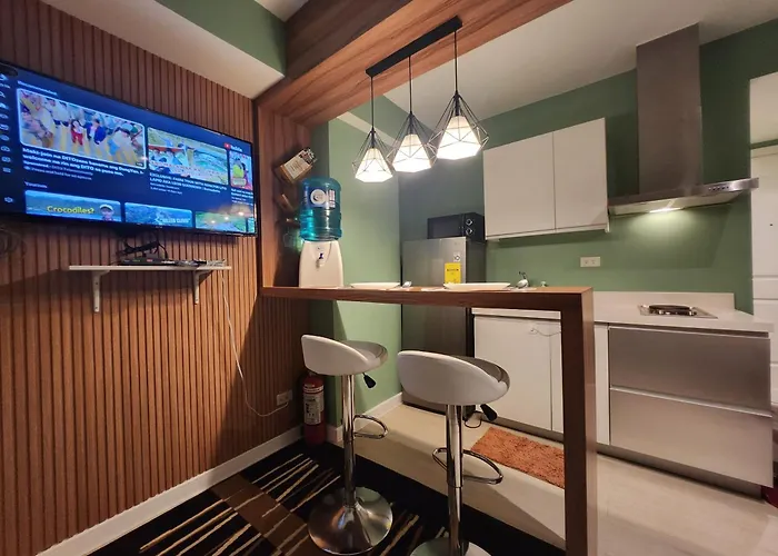 The 4-star Near Airport, Double Bed, White Sand Gym & More Manila hotel provides proximity to the Upper Bicutan neighborhood, which is located nearly a 25-minute walk away. Guests can indulge in this Manila aparthotel's garden, accompanied by a balcony.